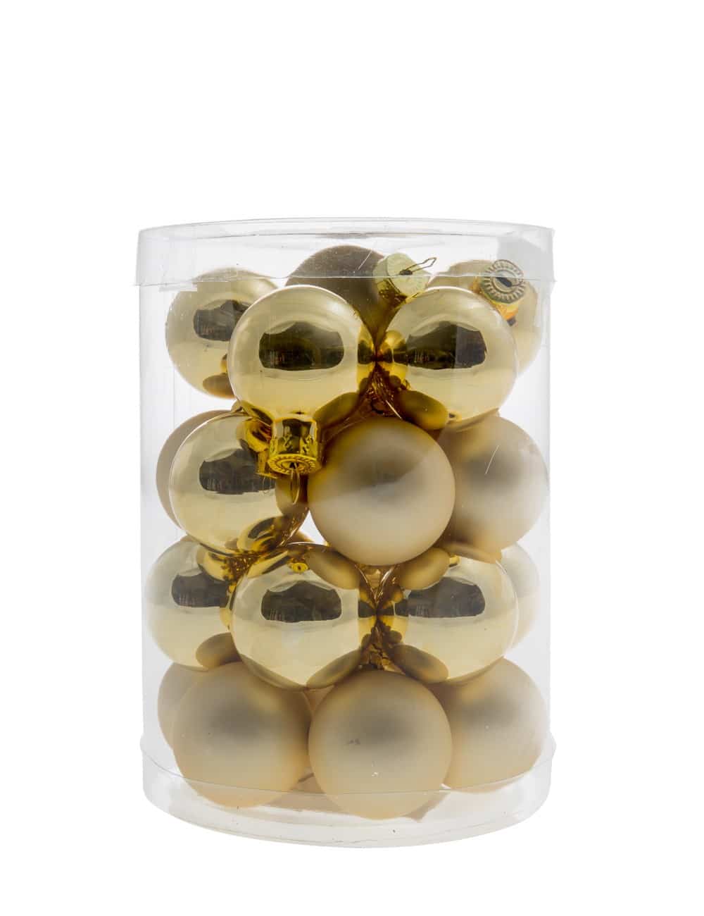 Palline di vetro oro 40mm box 36 pezzi, 18 matt/ 18 lucide